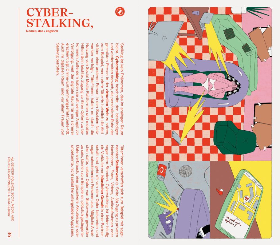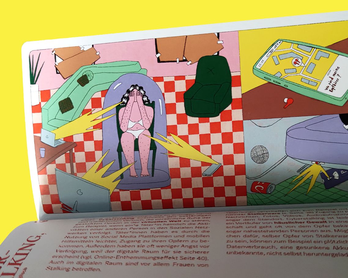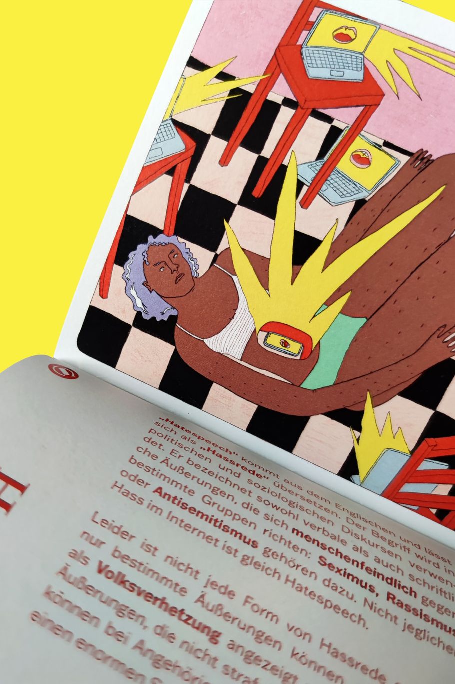 "HASS HINTER GLAS" is a still ongoing project. It started with my masters graduation work, an illustrative glossar dealing with the growing problem of digital violence against women and queer people. Using emotional images next to informative definitions of important terms it should help to give people the language to talk about online hate.
