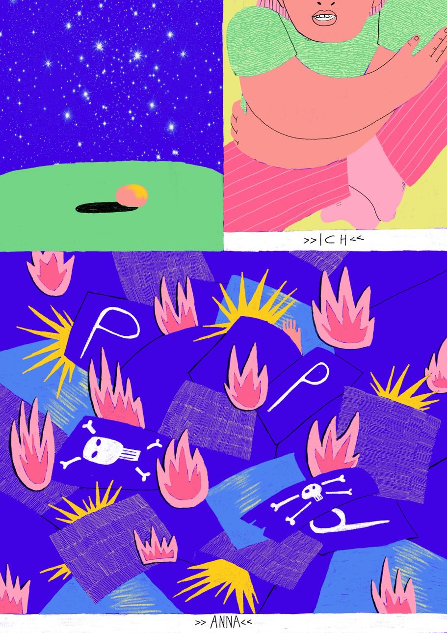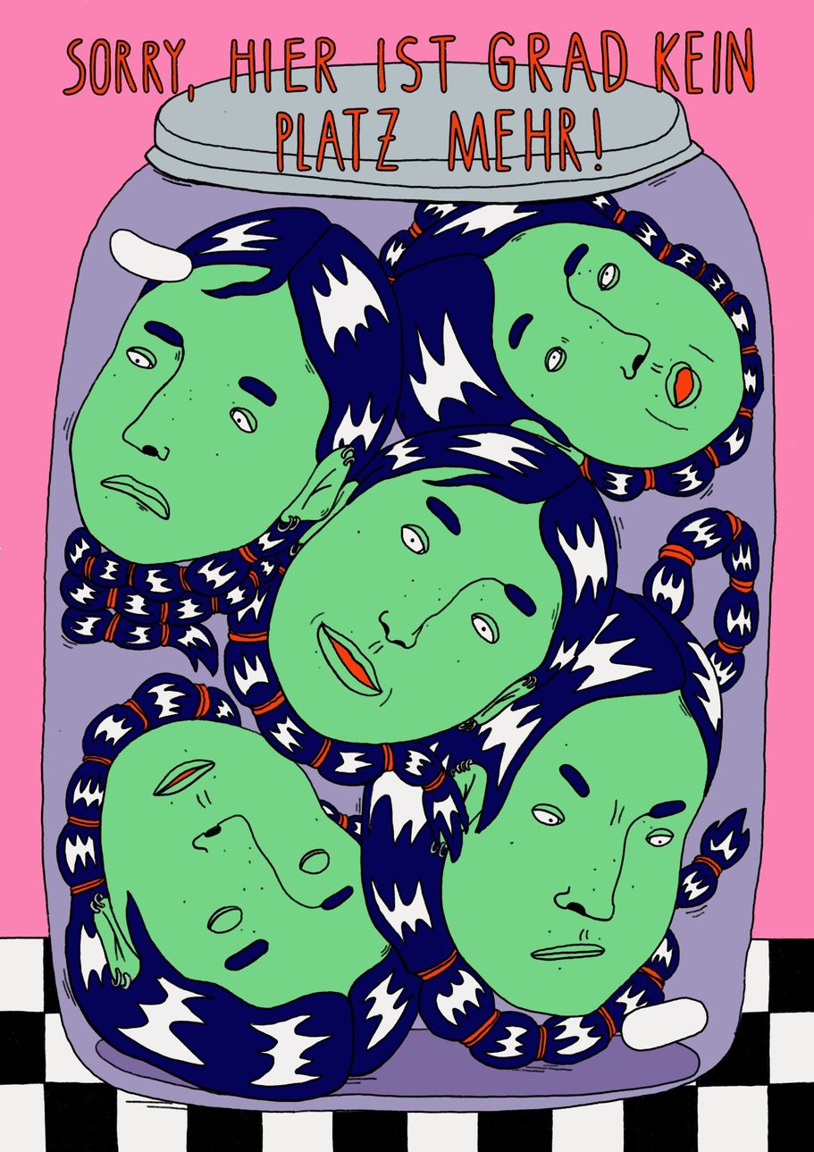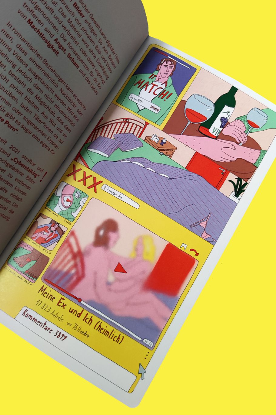 "HASS HINTER GLAS" is a still ongoing project. It started with my masters graduation work, an illustrative glossar dealing with the growing problem of digital violence against women and queer people. Using emotional images next to informative definitions of important terms it should help to give people the language to talk about online hate.
